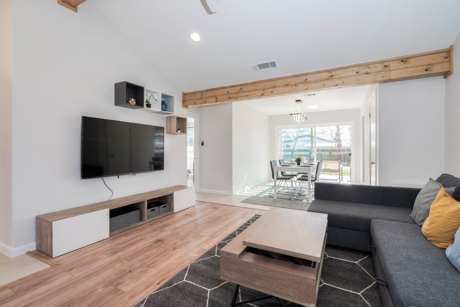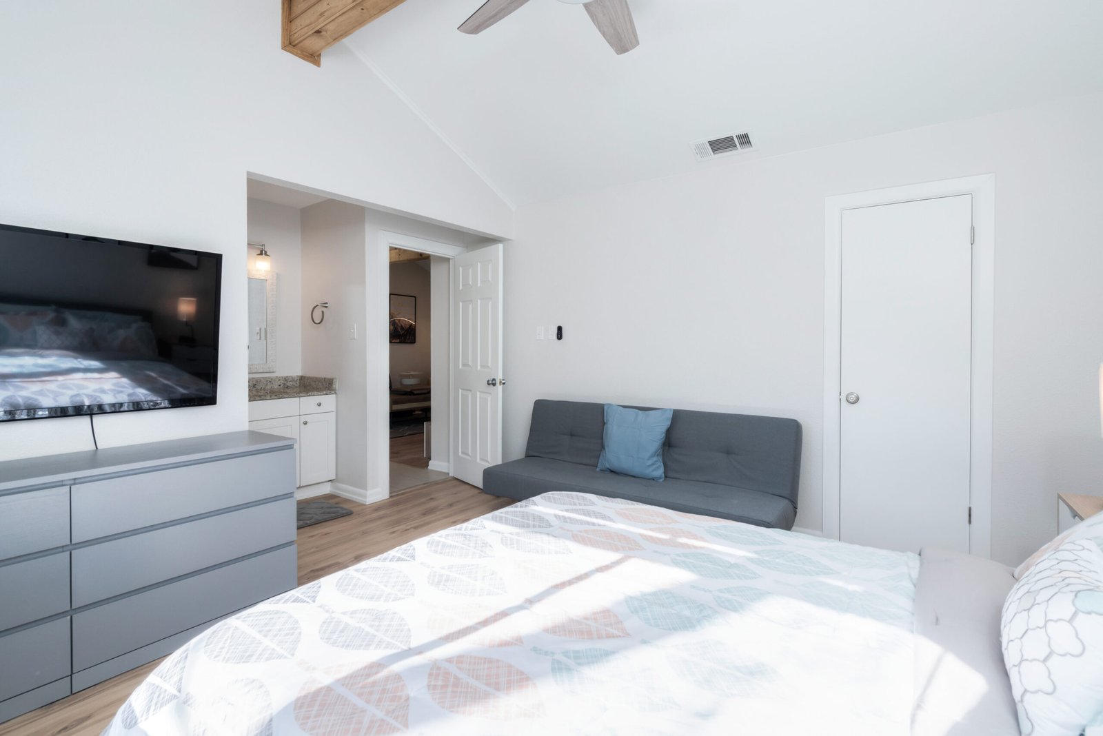 Comfortably, newly renovated 3B2B home features beautiful new modern furniture, 65″ smart TV, smart décor with built in USB chargers, walk in shower, a gorgeous covered patio, free google Fi and work desks. The perfect place for families w/ kids or business people looking for the perfect home away from home.